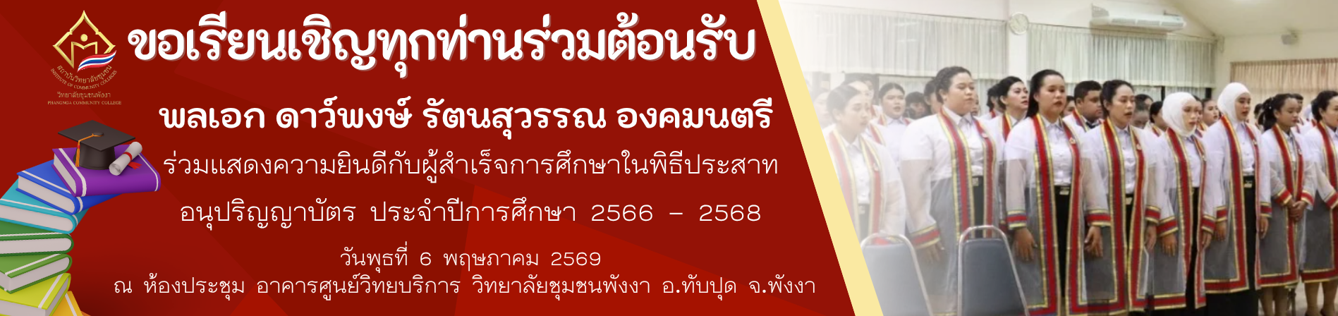 การประชุมสภาวิทยาลัยชุมชนพังงา ครั้งที่ 3/2569 ข่าวประชาสัมพันธ์ การประชุมสภาวิทยาลัยชุมชนพังงา ครั้งที่ 3/2569 webmaster 22 เมษายน 2026 วันจันทร์ที่ 21 เม Read More Read more about การประชุมสภาวิทยาลัยชุมชนพังงา ครั้งที่ 3/2569